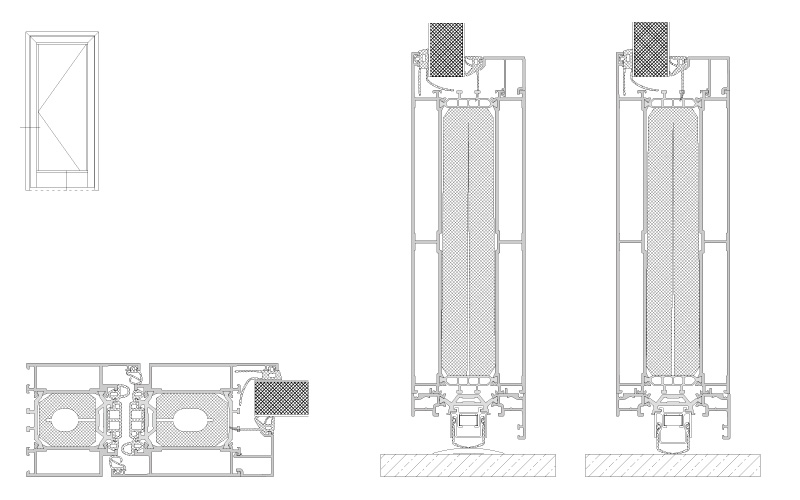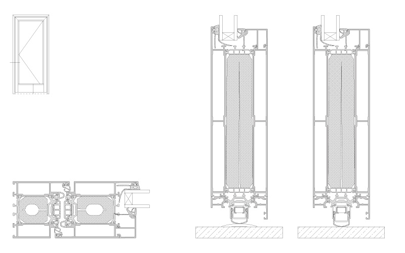 BF Line is a derivative QUALIDO product with a special ground seal and a flush or semi-circular threshold enabling a barrier free entrance. The ground seal under the bottom rail profile on the leaf, automatically lowers when the door is closed to prevent air permeability, water leakage and to sustain thermal insulation.