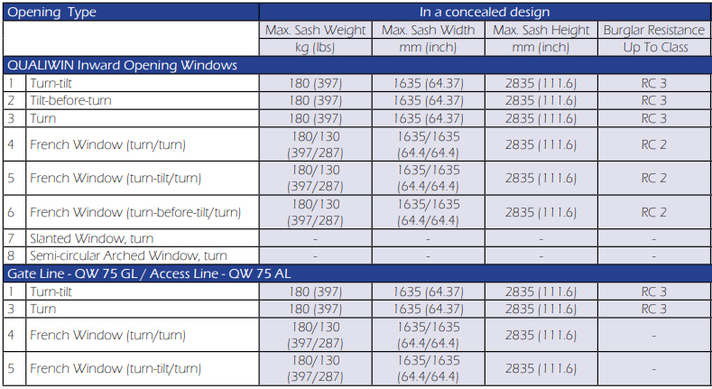 - Highly thermally insulated aluminum window design with an integrated sash. Profile depth of the frame is 75 mm (2.95”) and the sash lap on the interior is 10 mm (.39”).